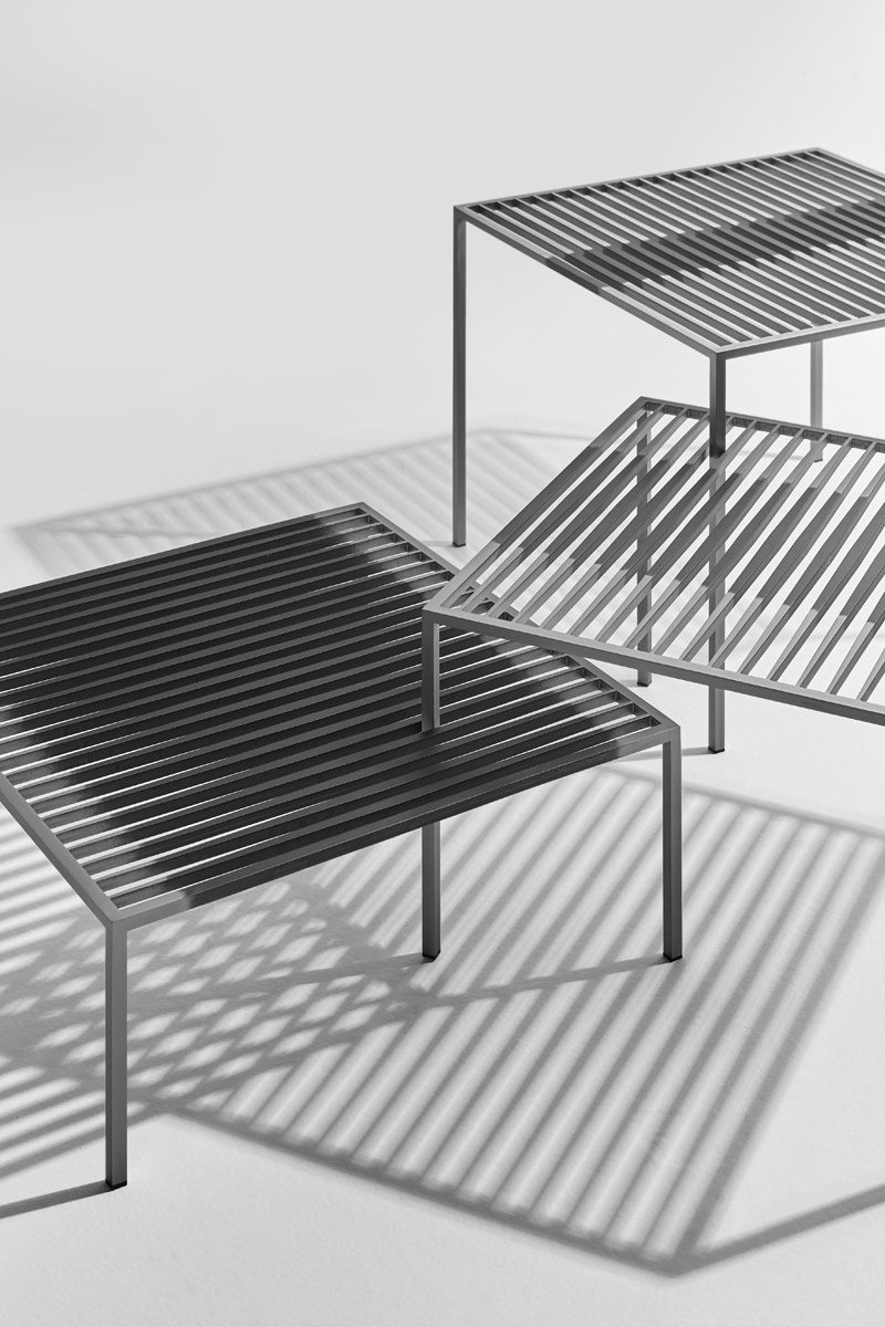 A spiccare, anche questa volta, è lo stile del brand, giocato sull’equilibrio sofisticato di proporzioni, lavorazioni sapienti, rigore e versatilità. Pagine Scritte è una famiglia composta da tre tavolini in differenti altezze (cm 45x45x20/30/40h), che possono essere combinati tra loro per creare arredi “a incastro” sempre diversi. Le barre metalliche parallele di cui sono composti, infatti, rastremate alle estremità e con una sezione più ampia al centro, creano un piano d’appoggio tridimensionale che può essere utilizzato da solo o in combinazione con più elementi, in qualsiasi ambiente.