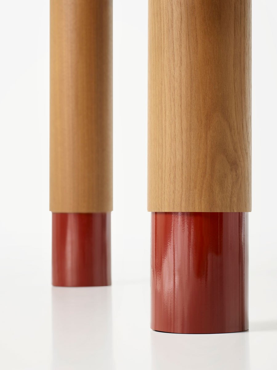 La peculiarità di Lira è data dalla sua seduta sporgente che le permette di essere appoggiata facilmente al piano del tavolo, per fare ordine o per facilitare la pulizia del pavimento. Lira unisce un carattere deciso e minimale con una struttura che combina legno e acciaio.