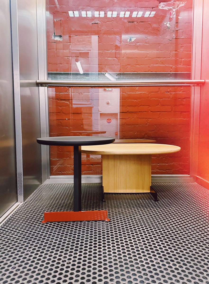 Il cuore del progetto è rappresentato dal sistema di sollevamento che è composto da una cinghia dentata e quattro pulegge connesse alle gambe telescopiche. Questo originale e intuitivo meccanismo permette una regolazione dell’altezza del piano semplice e intuitiva, senza la necessità di elettricità.
