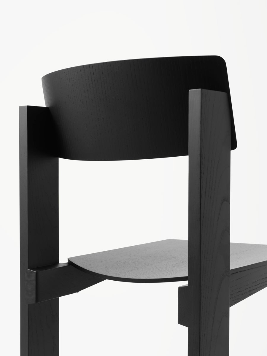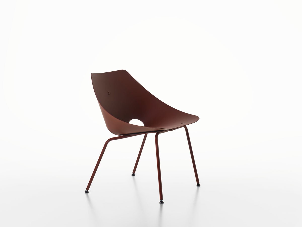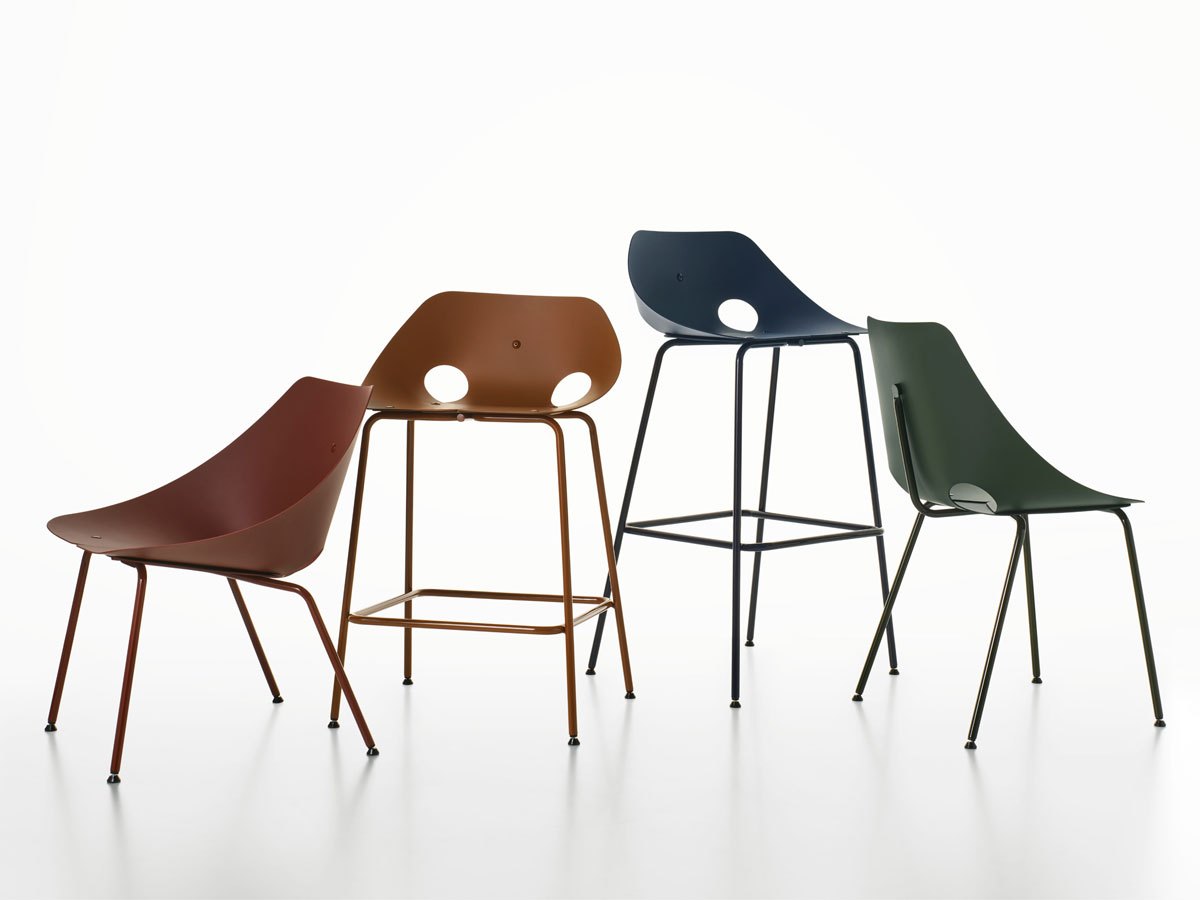 Le sedute appaiono leggere ed eleganti allo stesso tempo: la monocromia opaca della scocca ne esalta il disegno essenziale. Eleganti versioni in ABS impiallacciato con tranciati di rovere o noce completano la gamma.