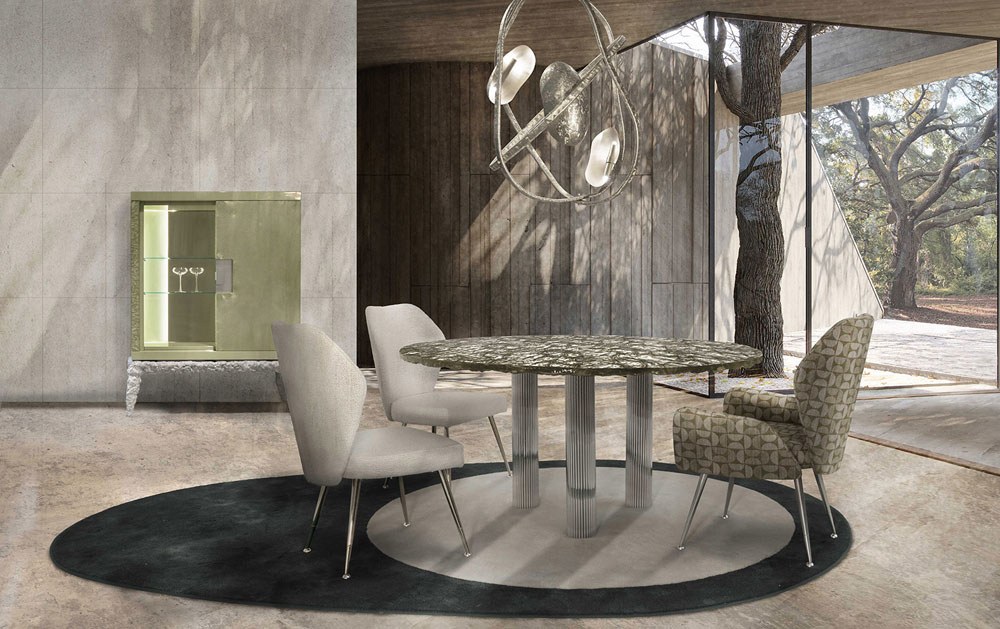 I progetti oggi giocano con forti accenti glamour, materiali pregiati e lavorazioni sperimentali che uniscono le tradizioni radicate dell’artigianato di qualità a una creatività nuova. Cristalli, metalli nobili, tessuti e pelli pregiate si mescolano in un connubio di lusso ed eleganza senza tempo, come dimostra la collezione Hessentia, ultima nata in casa Cornelio Cappellini, dove ogni pezzo sfoggia personalità e versatilità, andando oltre gli standard estetici e qualitativi del contemporaneo.