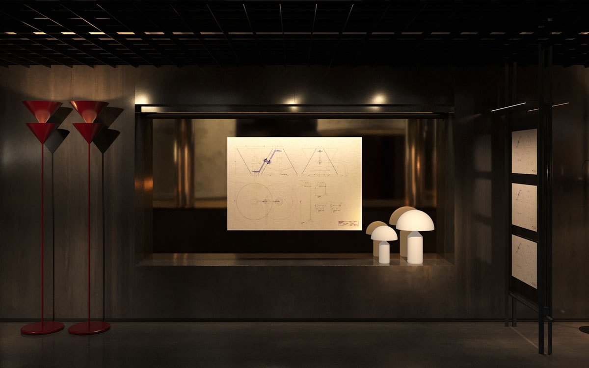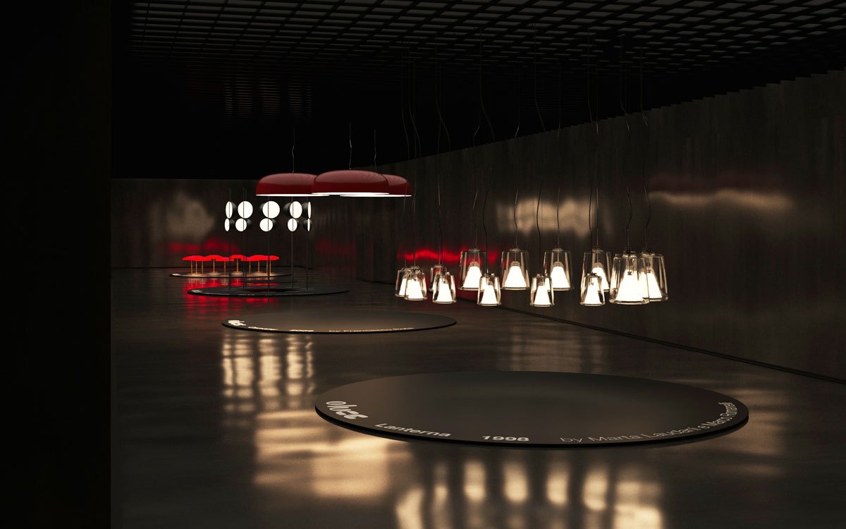 Accanto a queste icone, la mostra include prodotti più recenti come Lanterna e Dora, dimostrando come il linguaggio di Oluce continui a evolversi senza perdere identità.