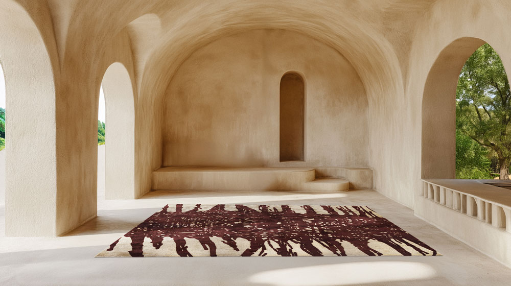 L’intensità del rosso, la seta vegetale, la trama annodata a mano trasformano ogni centimetro del tappeto in un viaggio sensoriale e simbolico. NODUS conferma così la propria vocazione: produrre pezzi unici che uniscono la forza espressiva del design contemporaneo al sapere millenario dei maestri tessitori.