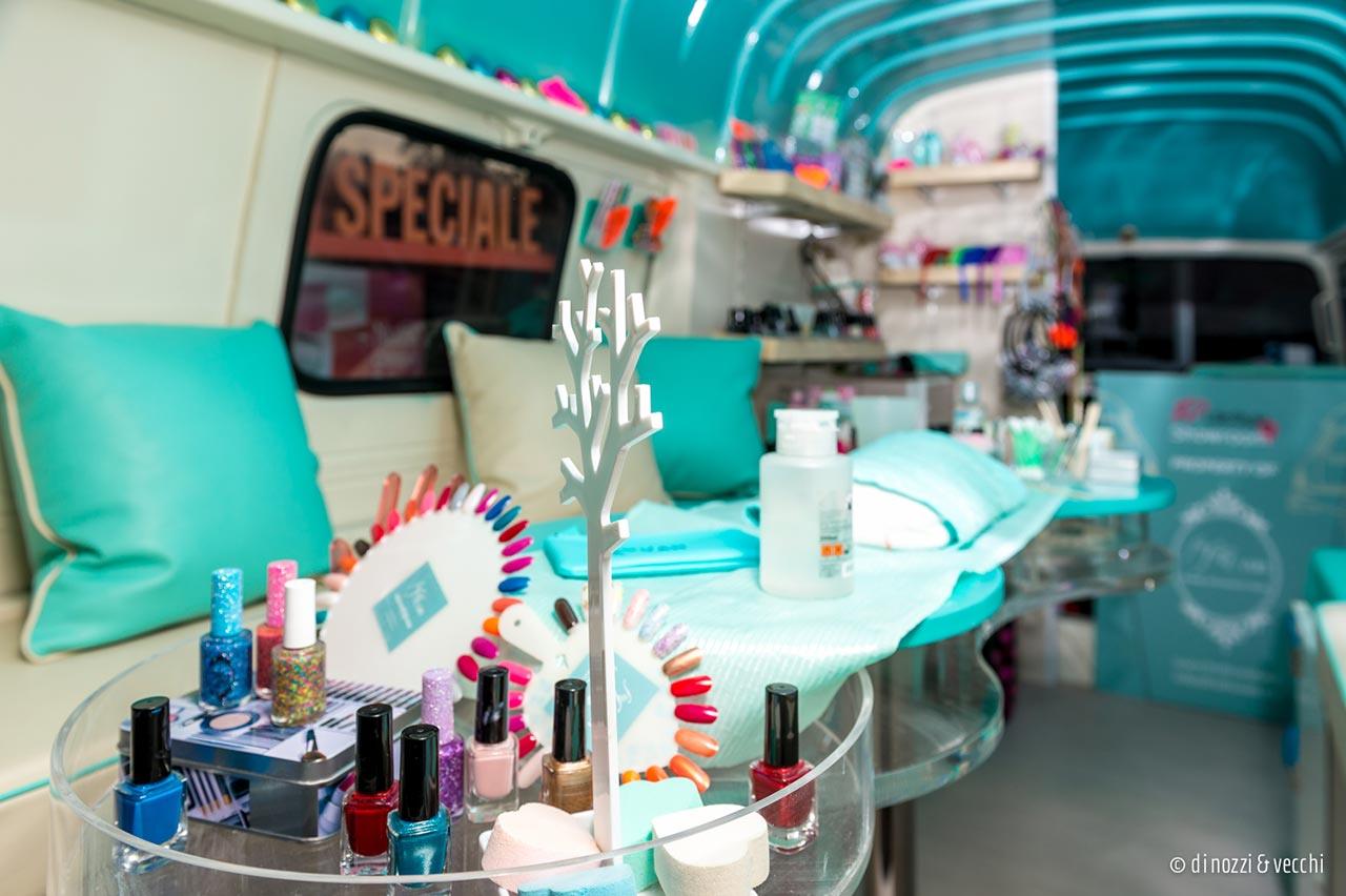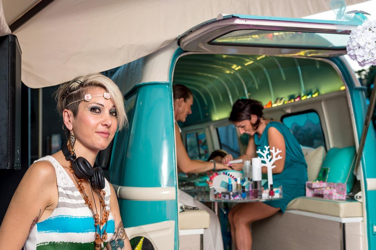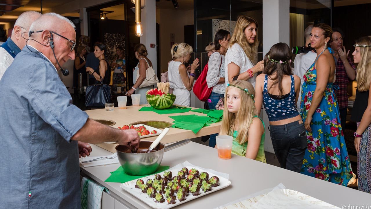 La serata, parte del ciclo di appuntamenti Design & Taste organizzato da Galbiati Arreda e Pasticceria Angela Milano con la collaborazione di CHI E’ CHI, si è trasformata presto in un’allegra festa Seventies. Tra abiti e coroncine di fiori, frutta glassata al cioccolato, e l’immancabile pulmino in perfetto stile hippy Frù frù Van, trasformato per l’occasione in un piccolo ma sfizioso beauty nail nomade, lo spazio di Galbiati è diventato il punto d’incontro di appassionati di design e professionisti del settore, pronti a lasciarsi trasportare, con un pizzico d’ironia, nel clima da revival.
