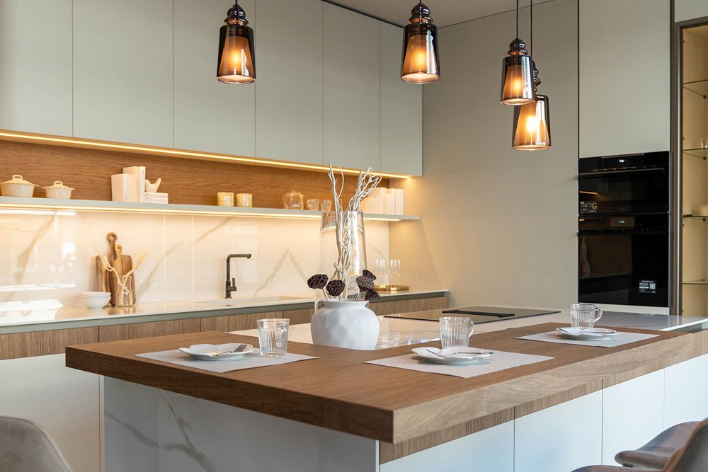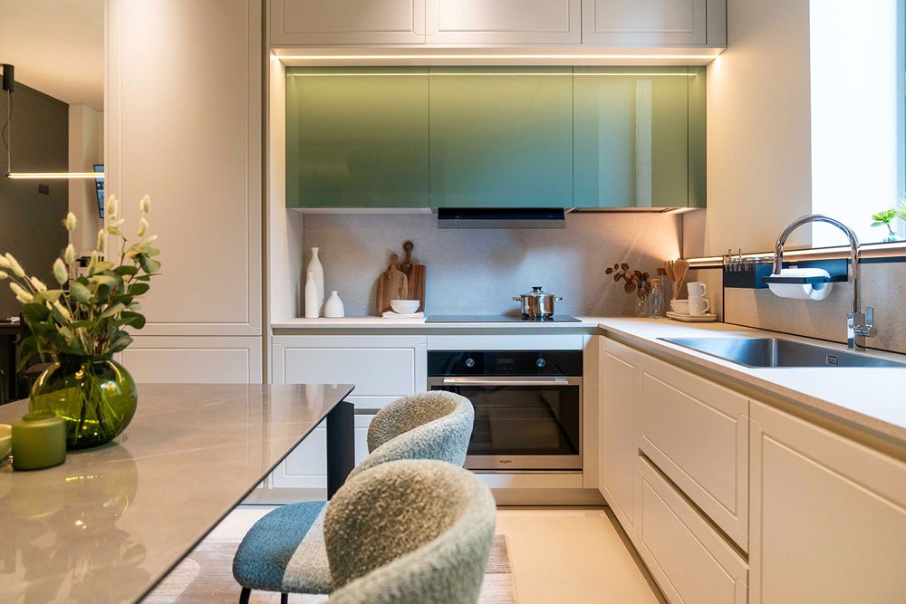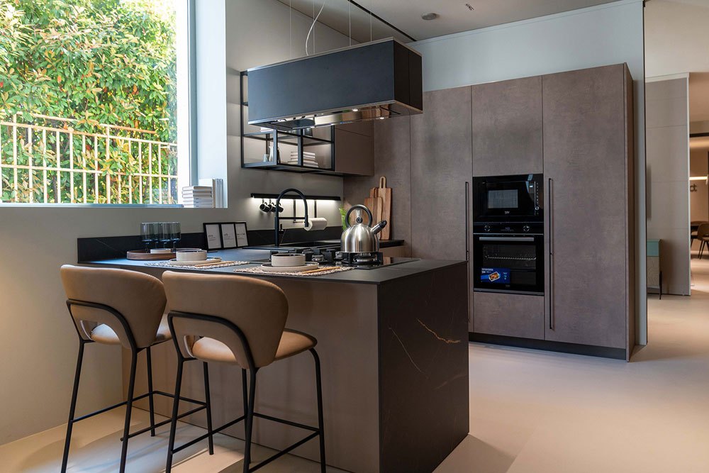 All’interno dello showroom, il percorso espositivo si sviluppa attraverso appartamenti completi. Non concept astratti, ma scenari realistici.