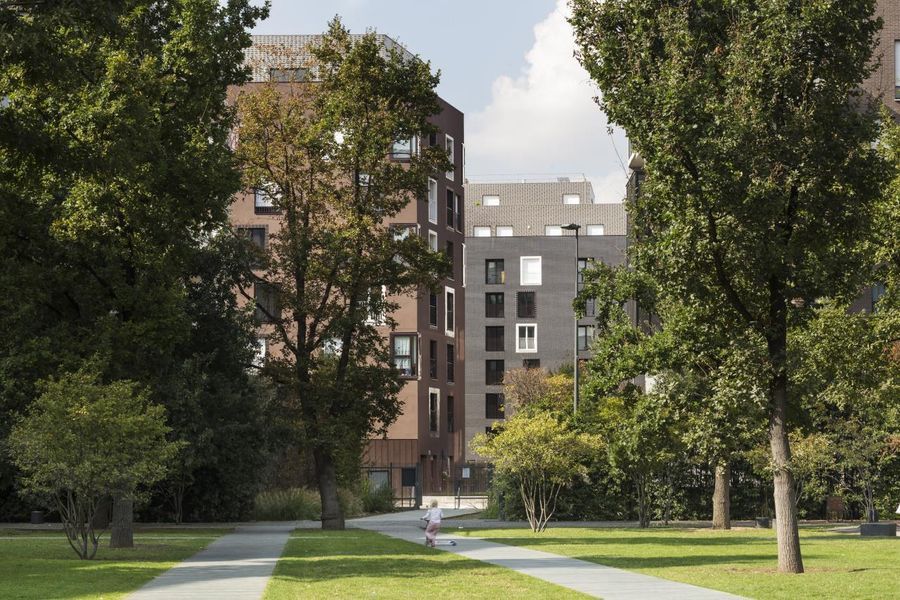 Il complesso residenziale è composto da 144 unità abitative, 39 residenze sociali che vanno dal primo all’ottavo piano e include 360 metri quadrati di spazio commerciale. La composizione volumetrica del progetto è suddivisa in tre edifici sviluppati principalmente lungo il tratto della linea ferroviaria RER C.
