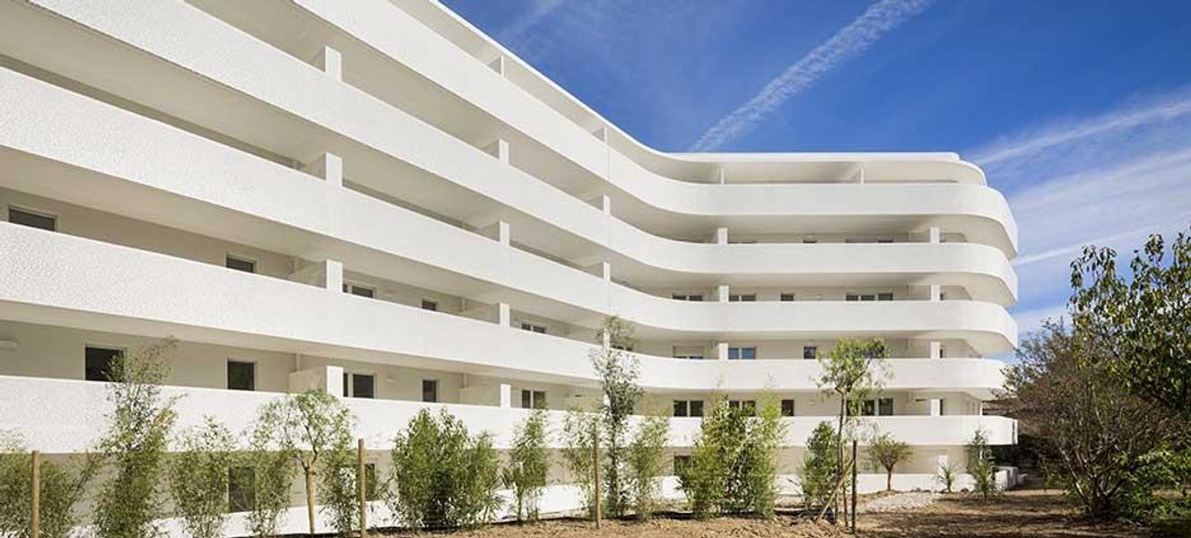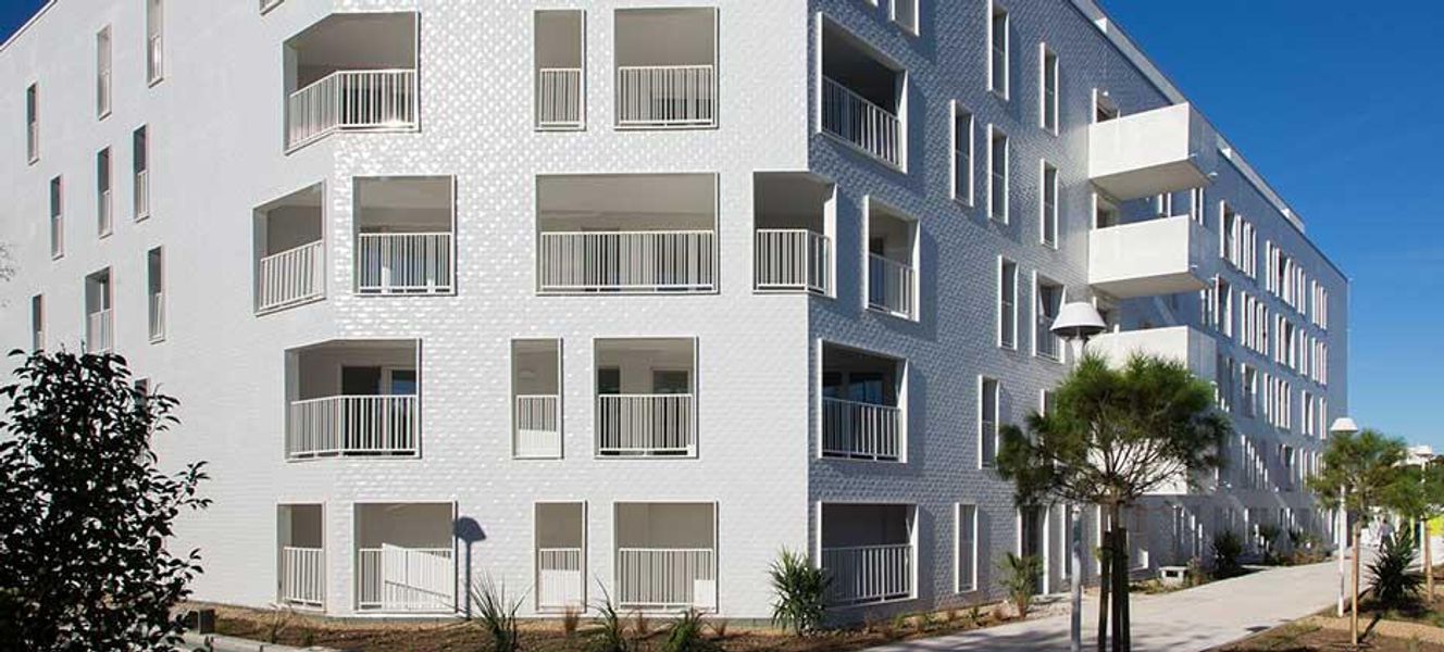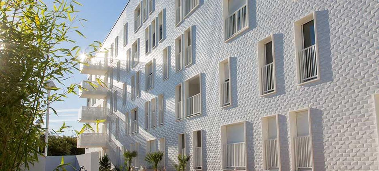 Jean-Baptist Pietri ama descriversi come un “razionalista romantico”, un ossimoro che riassume la caratteristica dell’architettura del complesso residenziale che mette in relazione andamenti orizzontali e verticali. L’edificio si presenta infatti con facciate dalla forma duale, sia ondulate che angolari: a sud-ovest scorre una lunga facciata bianca composta da balconi continui dalla forma ondeggiante, mentre a nord-est le linee diventano rettilinee e angolari e la facciata è rivestita con un mosaico bianco sfaccettato: i riflessi e i giochi di luce della facciata in gres porcellanato fluttuano con il trascorrere delle giornate e delle stagioni, accompagnate dal colore blu del mare e del cielo.