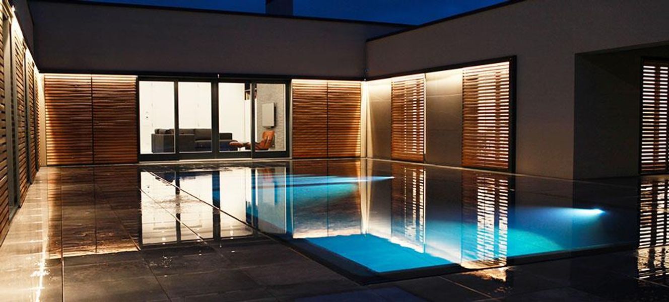 La vita si svolge attorno alla piscina: tutte le stanze aprono ampie vetrate sulla corte, schermate da frangisole scorrevoli di grandi dimensioni; una loggia profonda mette in comunicazione l’intimità della corte con il giardino esterno.