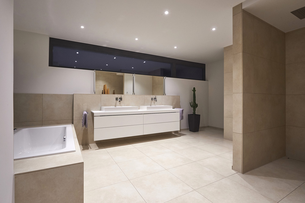 Per il rivestimento dei pavimenti della zona giorno, dei corridoi e dei bagni è stata scelta la collezione in gres porcellanato Mineral Chrom nel colore Grey e nel formato 30×60 cm postata con fughe tono su tono. Tutto il design dell’abitazione è caratterizzato da una gamma di colori chiari cromaticamente coordinati tra di loro per consentire a creazione di spazi raffinati ed eleganti ma anche confortevoli e rilassanti.