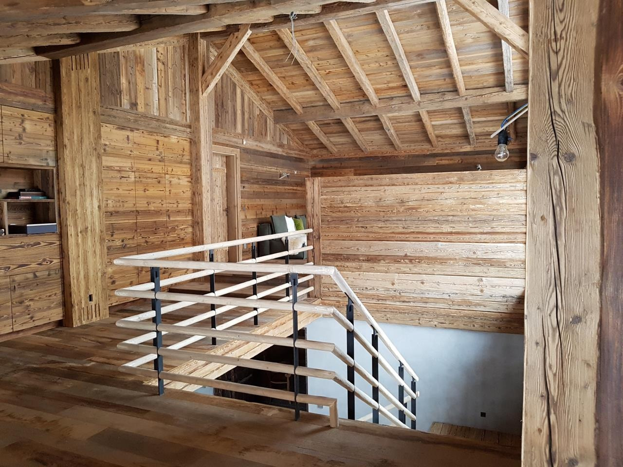 La facciata esterna e gli arredi interni sono perfettamente armonizzati: il vecchio legno massello grezzo si estende dalla parete esterna fino alle pareti interne, al pavimento e ai mobili e rappresenta il fil rouge del concetto di successo di Oikos. Con l’aggiunta di elementi di granito e due grandi camini, gli interni risultano naturali, essenziali e senza tempo. Con il piano terra ribassato e le ampie vetrate, sfuma il confine fra dentro e fuori e la natura entra direttamente nel soggiorno.