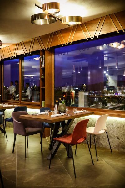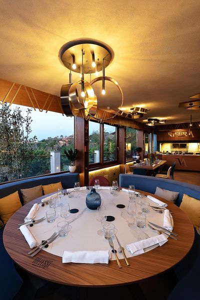 Per questo progetto, infatti, Riflessi ha disegnato appositamente dei tavoli Shangai XL con altezza 95cm, con piano in ceramica che combina praticità ed eleganza, per l’assenza di porosità del materiale che lo rende igienico e facile da pulire e per la raffinatezza delle sue finiture. A causa dell’aumento dell’altezza di questi tavoli, sono inoltre nati i primi sgabelli Riflessi, che l’azienda ha poi presentato al Salone del Mobile 2019 declinati in diverse sedute: per il Riserva in particolare è stato fornito un centinaio di sedute tra sgabelli nei modelli Carmen, Sofia e Lilia, ma anche sedie Sofia, Lilia, Katia, Carmen e Perla.