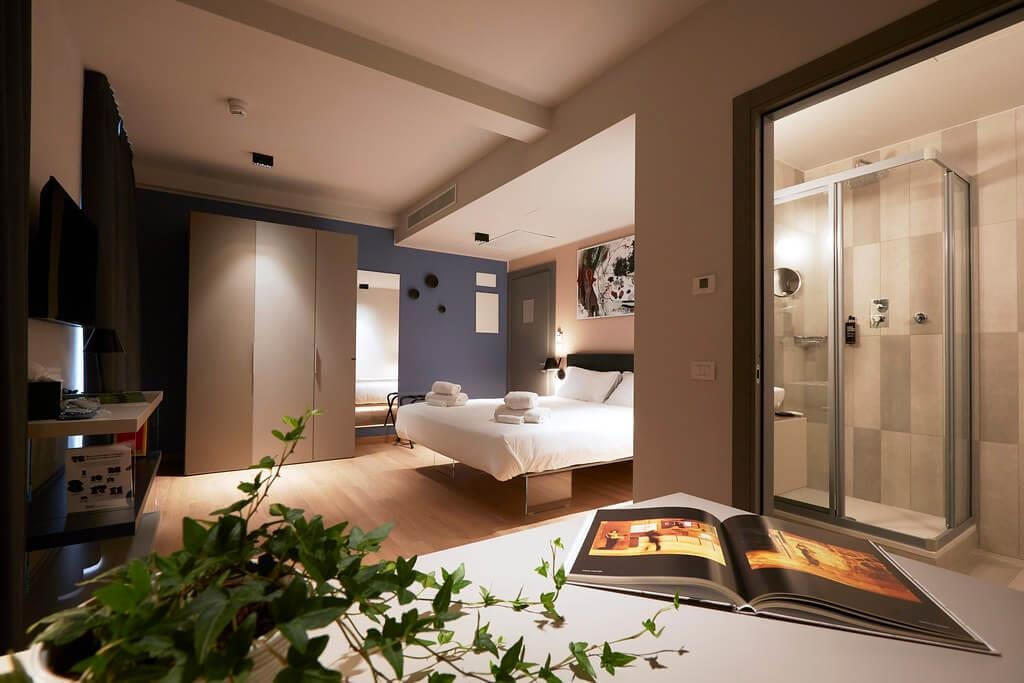 Il lavoro di LAGO inizia abilmente a disegnare l’arredamento delle camere d’hotel, per poi seguire l’onda dell’eleganza degli spazi comuni, tra cui la vivace zona bistrot ed il caldo e accogliente co(z)working.