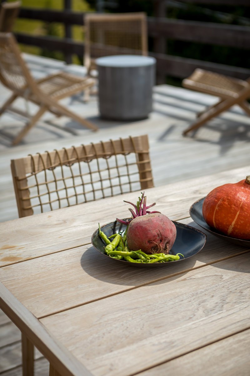 Gli spazi outdoor dell’hotel sono arredati con la collezione Synthesis, una delle masterline di Unopiù, che coniuga alla perfezione il design essenziale e discreto con materiali pregiati come il teak e la fibra sintetica intrecciata a mano WaProlace®.
