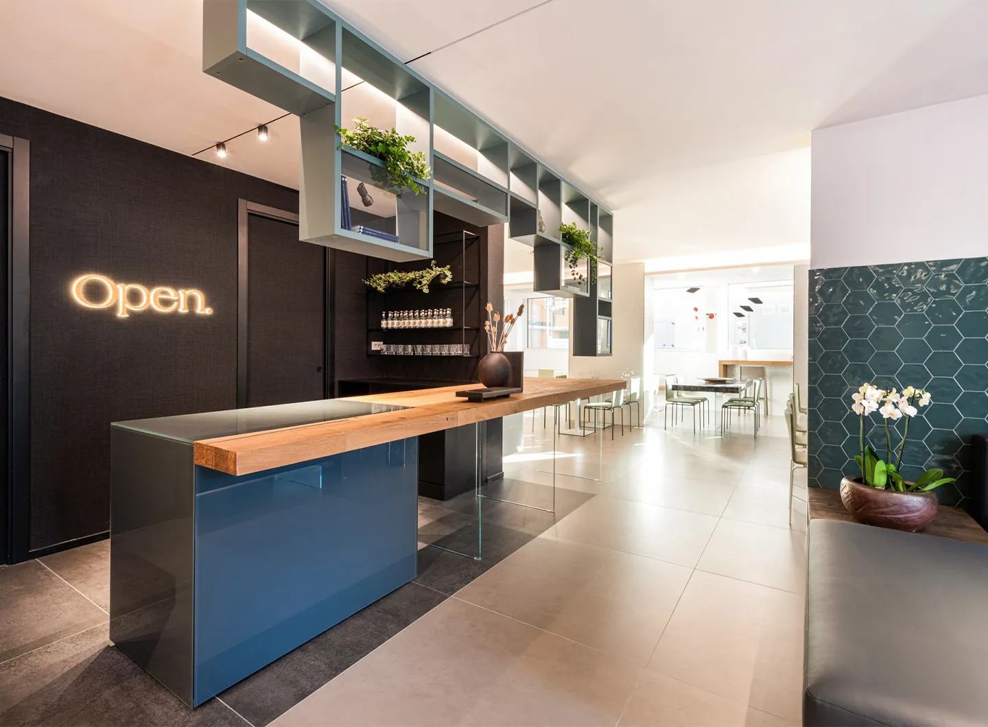 Open. Hotel, progettato e seguito da Contract Lab in collaborazione con Isabella Matteini, è un hotel di design che, grazie agli arredi LAGO e agli interior MAD051, unisce ospitalità e cura di un lifestyle per offrire la migliore esperienza nella rinomata località balneare di Rimini.