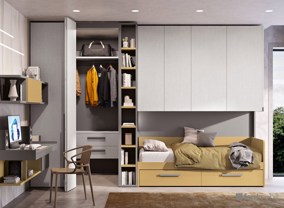 Dalle camerette modulari, che uniscono letti a scomparsa e scrivanie integrate, ai sistemi di arredo per soggiorni che ottimizzano lo spazio con librerie e tavoli trasformabili, ogni proposta è pensata per rispondere a esigenze specifiche, con un alto grado di personalizzazione.