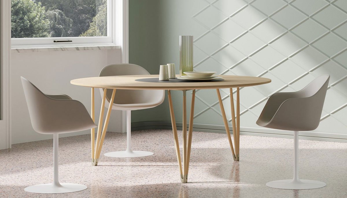 Questa evoluzione ha portato nel 2019, alla creazione di New Lady Soft, contraddistinta da una scocca imbottita e rivestita. Le sedute della collezione si appoggiano su diverse basi, tra cui un elegante treppiede in alluminio, una base in legno massello e una base a calice in acciaio.