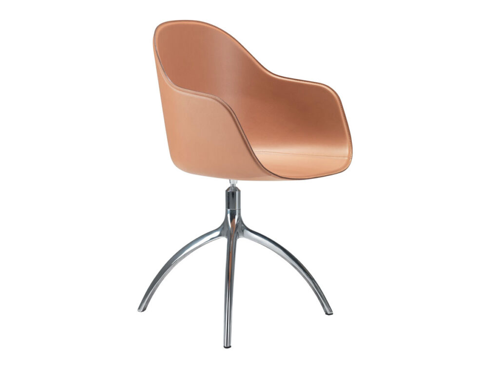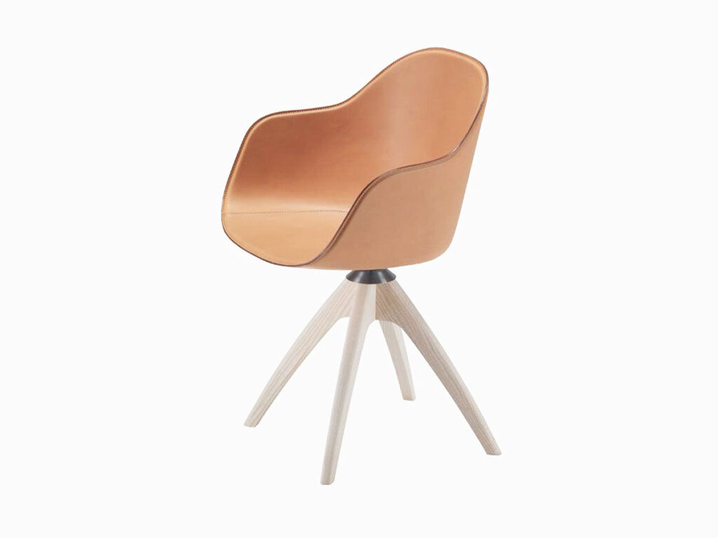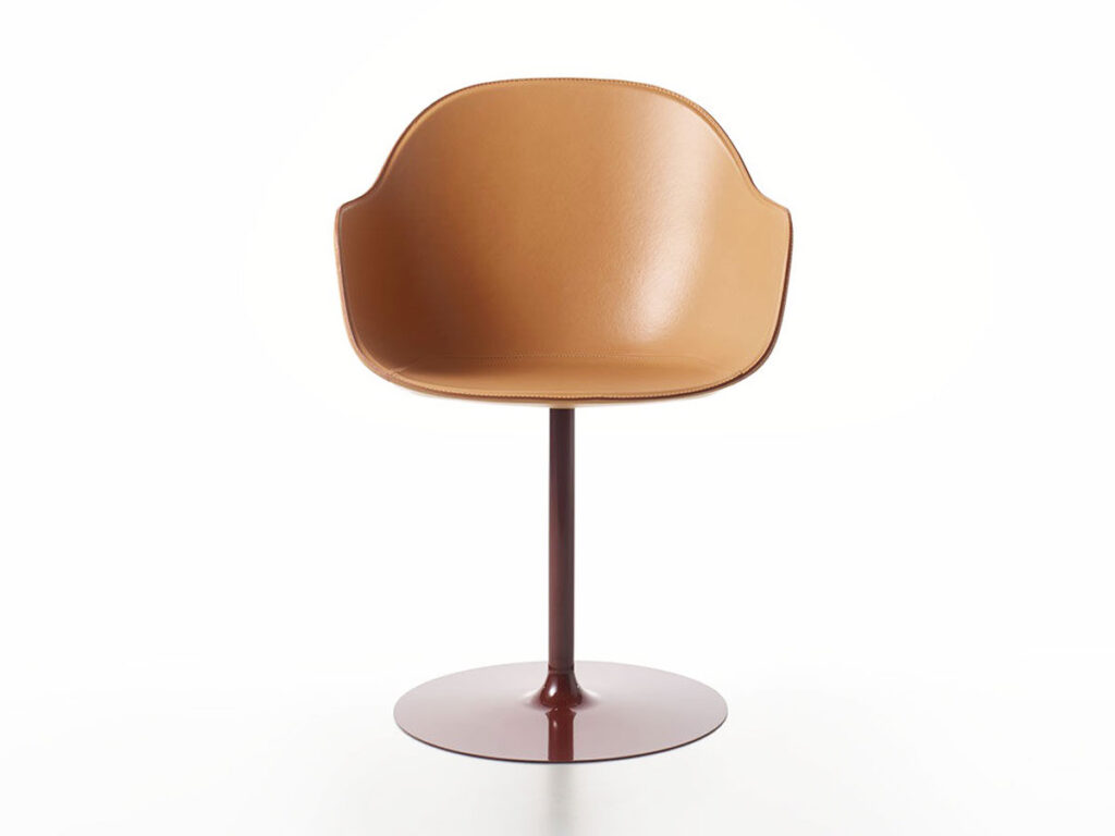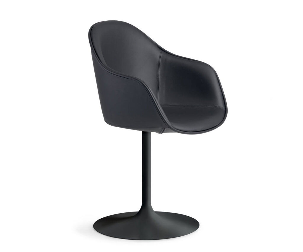 La prima evoluzione della poltroncina Young è New Lady, un’elegante interpretazione della seduta da soggiorno, misurata nelle dimensioni e curata nei dettagli costruttivi. La seduta infatti si distingue per le preziose impunture che delineano il profilo della struttura, per l’ampio schienale avvolgente rivestito in cuoio e per la versatilità delle basi di appoggio, fisse o girevoli.
